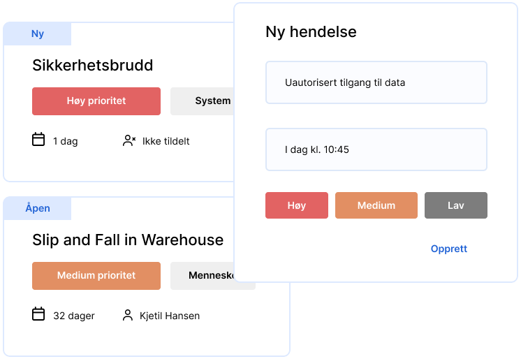 Opprett og følg opp alle hendelser i organisasjonen.